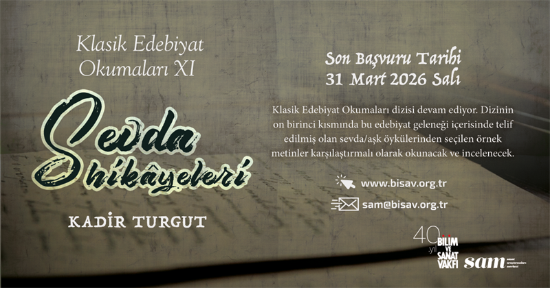 Cumartesi günleri 16.00-18.00 saatleri arasında Bilim ve Sanat Vakfı'nda yüz yüze yürütülecek olan atölyeye katılmak isteyenlerin 31 Mart 2026 Salı, saat 23.00’e kadar aşağıda yer alan linke tıklayarak başvuru formunu doldurmaları gerekmektedir. Başvuru sonuçları e-posta aracılığıyla başvuru sahiplerine iletilecektir. İlk oturum 4 Nisan 2026 Cumartesi günü yapılacaktır.