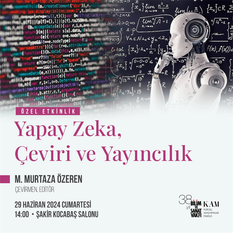 Özel Etkinlik: M. Murtaza Özeren, “Yapay Zeka, Çeviri ve Yayıncılık”, 29 Haziran 2024 Cumartesi 14:00 Şakir Kocabaş Salonu.
