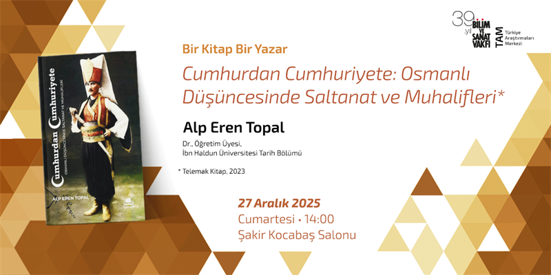 27 Aralık Cumartesi günü saat 14:00'te Dr. Alp Eren Topal'la Cumhurdan Cumhuriyete: Osmanlı Düşüncesinde Saltanat ve Muhalifleri (Telemak Kitap, 2023) başlıklı kitabını konuşacağız.