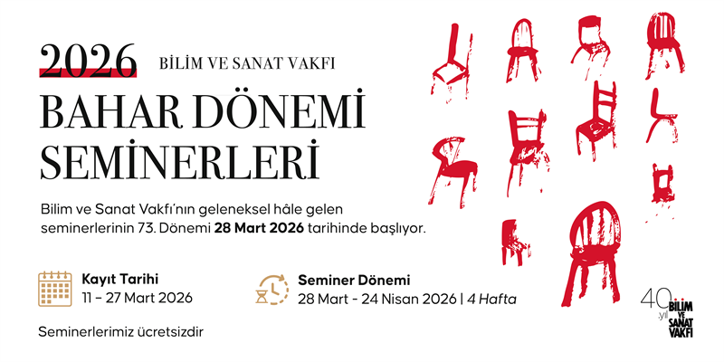 Bilim ve Sanat Vakfı’nın geleneksel hâle gelen seminerlerinin 73. dönemi 28 Mart 2026 tarihinde başlıyor. Bu dönemin seminer programında, uluslararası ilişkiler teorisi, küresel siyaset, jeopolitik, ekonomi, sosyal teori, hadis, İslam tıbbı, felsefe, edebiyat, hat, sanat, sinema ve tarih gibi farklı disiplinlerden birçok seminer yer alacak.